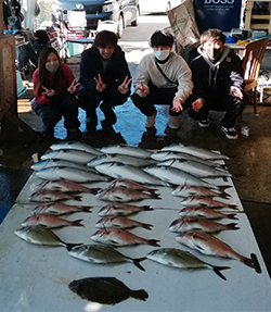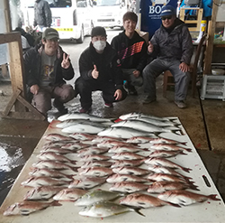 三重県三重郡の石川さんら4人がマダイにシマアジ、ワラサを大漁ゲット!みなさん流石の腕前です! |