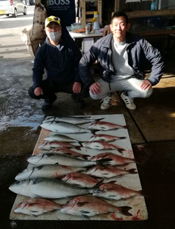 京都府宇治市の柳生さんら2人がマダイやシマアジ、ヒラマサなどをゲット!お土産どっさりですね♪ |