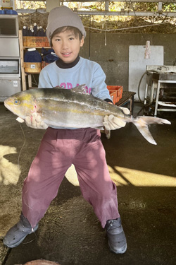 高橋さんファミリー4人がブリにカンパチ、ワラサなどの素敵なお土産をゲット! |